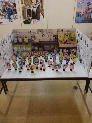 『シャーリー』と『ちろり』、ふたつのカフェ漫画のオブジェの展示を観賞。