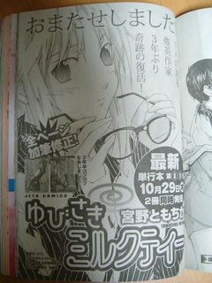 さて今号から宮野ともちか『ゆびさきミルクティー』が再開。